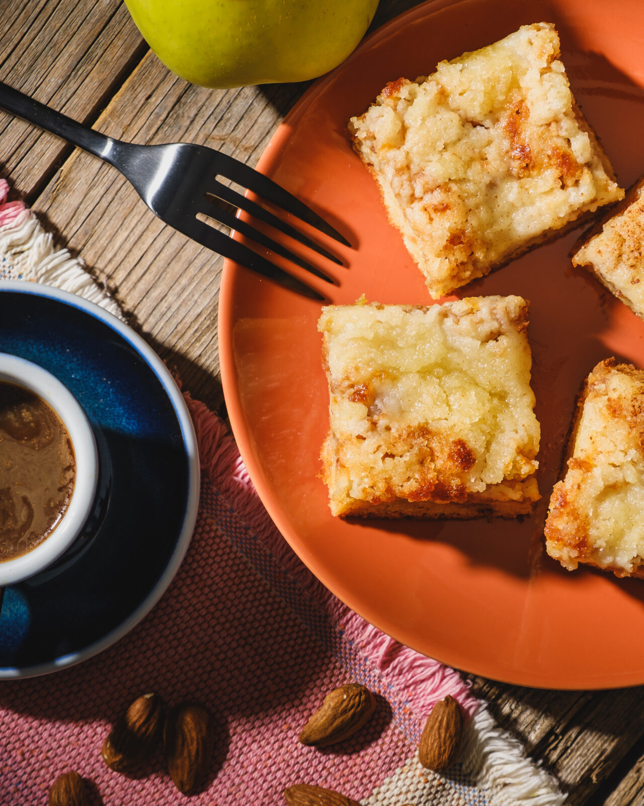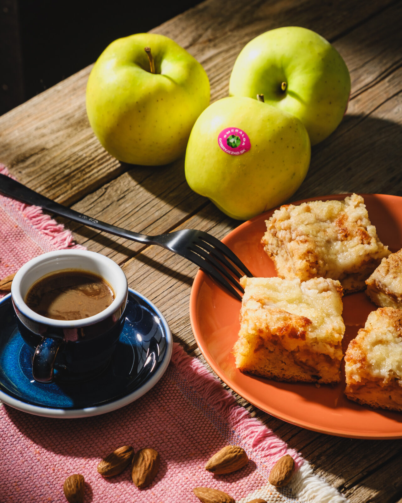 Všetky ingrediencie na cesto zmiešame metličkou. Cesto vylejeme na plech natretý maslom a vysypaným múkou. Na cesto rozložíme nastrúhané jablká aj so šťavou. Všetko zasypeme posýpkou a pečieme na 180 st.cca30 min.